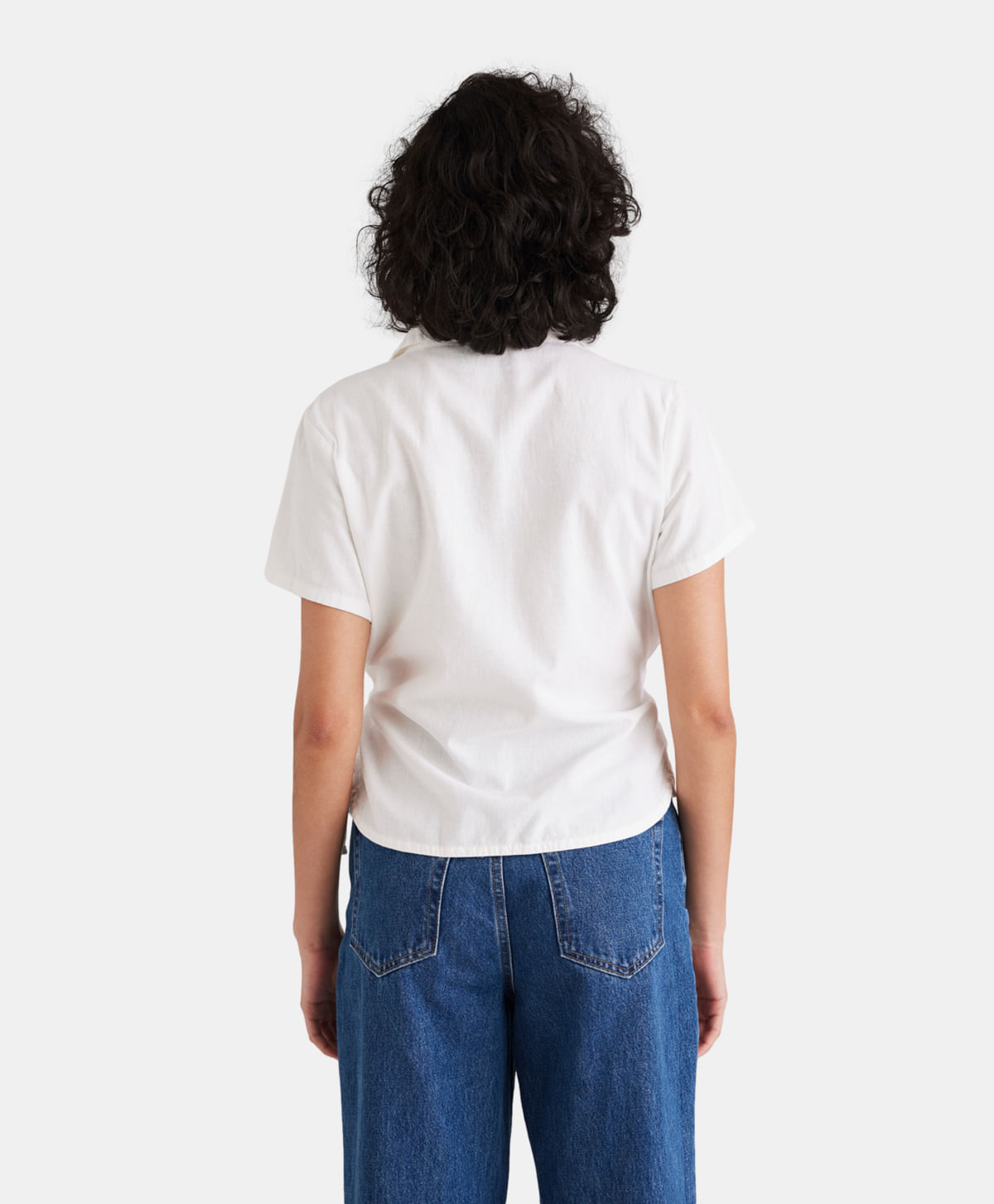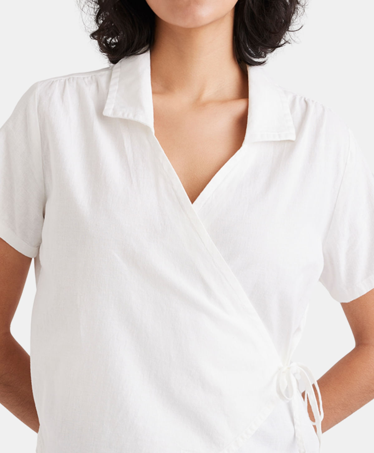 Esta pieza es nuestra versión femenina de una camisa de manga corta. El diseño cruzado presenta un escote en V clásico que puedes combinar perfectamente con shorts, pantalones o una falda. Un top versátil hecho para cualquier ocasión.
