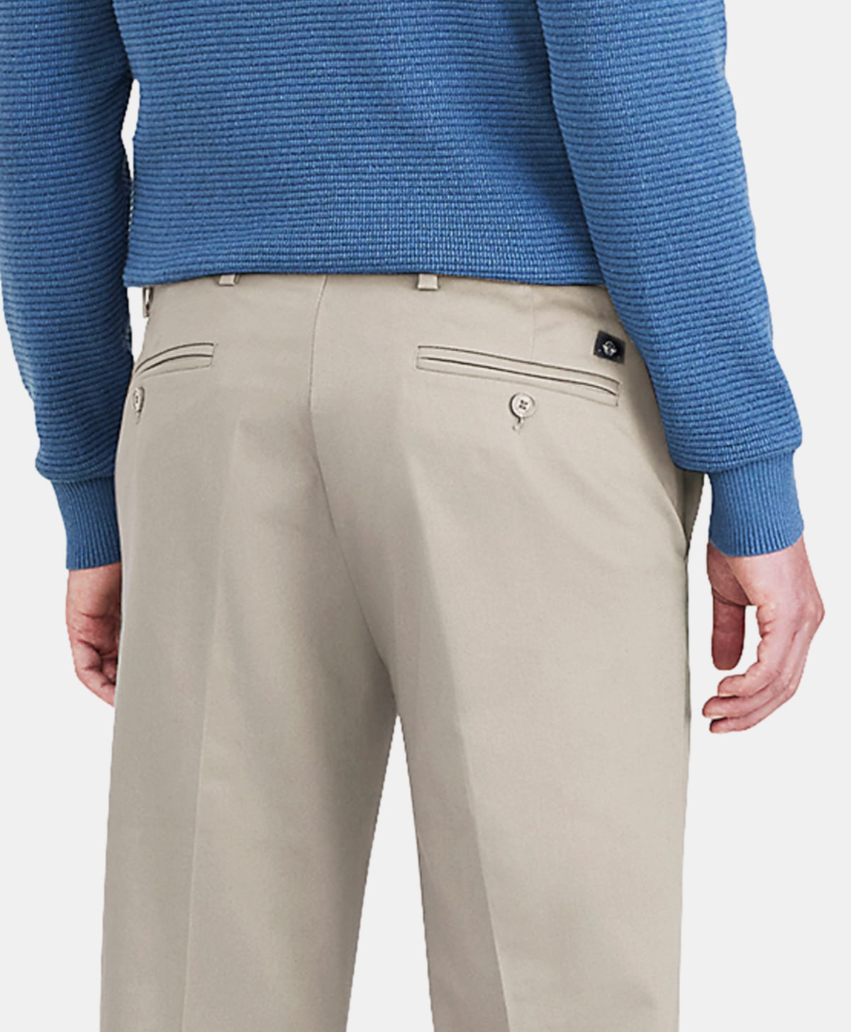 Dockers® Stain Defender® es un repelente de manchas sin PFAS que hace que los líquidos a base de agua formen gotas y se escurran antes de que puedan ser absorbidos por la tela